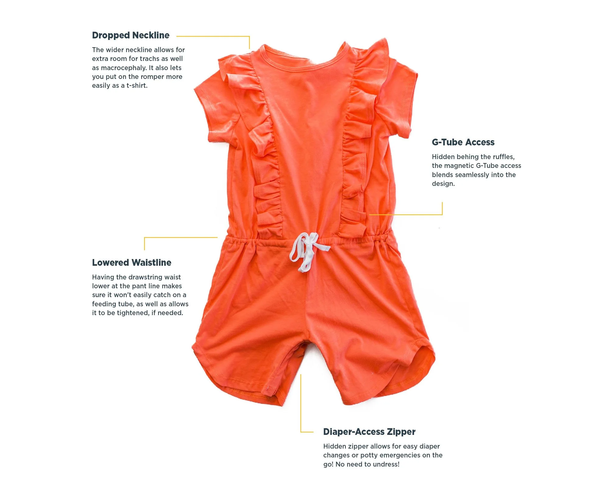Knowing that there’s other kids out there like Charlotte, they started designing a romper that solved 8-9 issues while still being a fashionable, everyday outfit that kids and their parents would want them to wear.